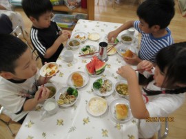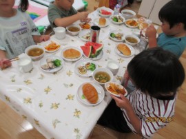 体操教室で身体をたくさん動かしたので、みんなお腹がペコペコ(´▽`) |