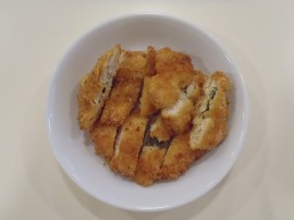 7,揚げ油にささみカツを入れきつね色になるまで揚げ