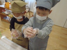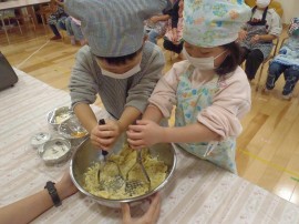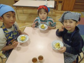 2025年11月21日(金)に年長児のクッキングがあり、スイートポテトを作りました。