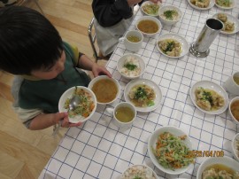 配膳している間、手遊びや、歌、お話などしながら楽しくすごしています♪ |